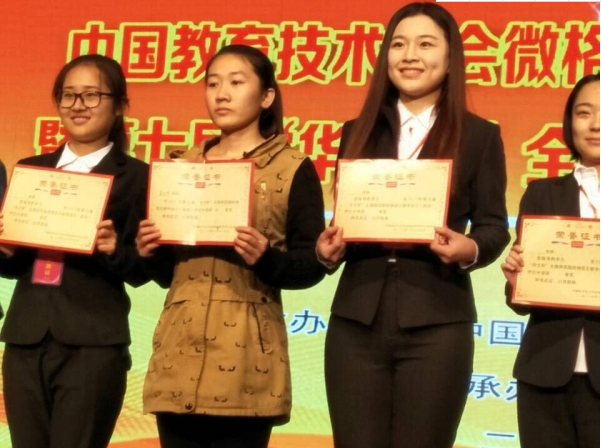 刘芳(右一)获教学设计“一等奖”、教学技能“二等奖”
