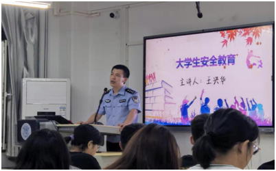 安全是一切活动的前提和基础,是不可超越的先决条件。为了培养新生的安全意识,减少校园安全隐患,王兴华警官受邀主持开展大学生安全教育会。他向新生普及安全知识,详细介绍了经常存在于身边的安全隐患及消除方法,使学校的“保护墙”更加坚固。
