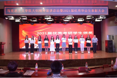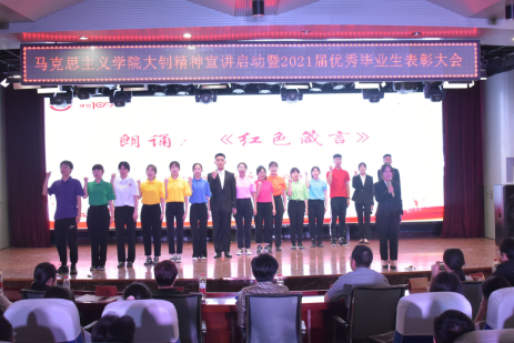 在庆祝中国共产党百年华诞之际,为了进一步宣传、弘扬、传承大钊精神,展现李大钊为“索我理想之中华,青春之中华”而英勇奋斗的一生,beat365英国官网网站成立了青春宣讲团。同时携手建党百年华诞,选树典型,表彰先进,传递新时代青春正能量。beat365英国官网网站于6月9日晚在会议中心举办大钊精神宣讲启动暨2021届优秀毕业生表彰大会。本次大会由beat365英国官网网站团总支书记李思思主持,出席此次活动的有beat365英国官网网站党总支书记郭海莉、beat365英国官网网站党总支副书记石瑾、beat365英国官网网站副院长宋晓敏、学生处副处长单丽、学生处思想政治教育科科长李冰以及beat365英国官网网站全体毕业班班主任老师,毕业生代表及全体2020级学生参加。