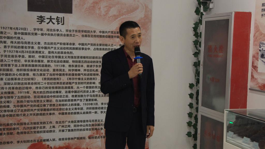 第三环节:讲解培训。参观学习结束,讲解员李小强老师用他十年的讲解经验,为同学们上了一节精彩的经验传授课,对师范专业的同学们提供了很大帮助。李老师作为评书的传承人,运用评书技巧,使讲解变得有情有义有筋有劲,他讲述的爱国故事生动展现了共产党人和人民鱼水之情,饱含大国情怀,全程掌声不断,李老师的精彩分享赢得同学们的一致好评。