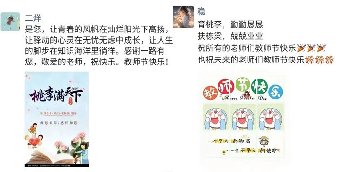 在教师节这样一个特殊的日子里,beat365英国官网网站的同学纷纷在朋友圈晒出自己对老师的心意与祝福。一声问候,一句祝福,一片心意。“老师好!您辛苦啦!祝您节日快乐!”。那些与老师在一起的点点滴滴,那些共同经历过的感动历历在目,化成一句句教师节祝福。在一张张与老师的合照背后,是一句改变一生的教诲、一次刻骨铭心的交谈、一通醍醐灌顶的提点……