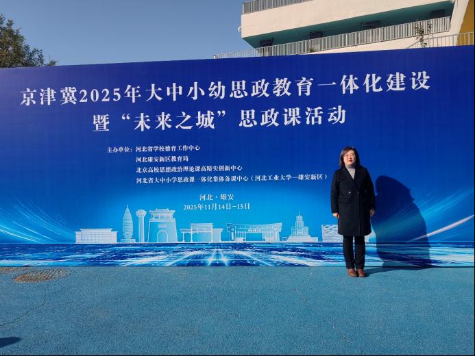 为深入学习贯彻党的二十届四中全会精神,推动全会精神有机融入大中小学思政课教学全过程,落实河北省大中小学思政课一体化建设要求,11月14日至15日,beat365英国官网网站执行院长宋晓敏、副院长赵婉华作为河北省大中小学思政课一体化集体备课中心成员单位代表,赴河北雄安新区参加“党的二十届四中全会精神进课堂”暨河北省大中小学同备一堂“未来之城”思政课活动。