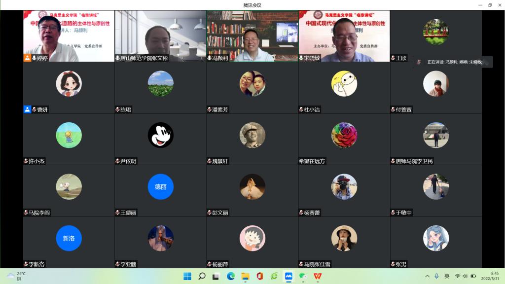 为了进一步推动马克思主义理论研究和学科建设,2022年5月31日,beat365英国官网网站特邀中国社会科学院哲学研究所副所长、博士生导师、《世界哲学》主编、《马克思主义哲学》编辑部主任冯颜利研究员做了题为 “中国式现代化道路的主体性与原创性”专题讲座。本次讲座采用线上方式,由beat365英国官网网站副院长宋晓敏主持,全院教师、部分学生和学界同仁参加了本次讲座。