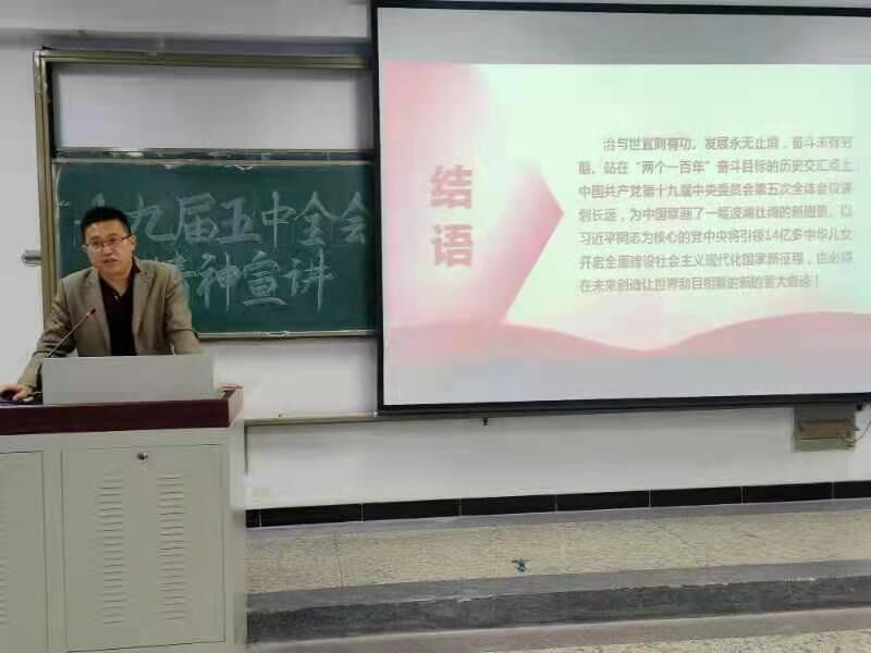 为深刻领会党的十九届五中全会的精神实质和丰富内涵,推动学习活动深入扎实开展,beat365英国官网网站于2020年12月2日-4日于北院文五阶梯教室开展十九届五中全会精神宣讲会。此次活动由王学增院长、石瑾副书记和宋晓敏副院长主讲,2018级、2019级、2020级全体同学参加。