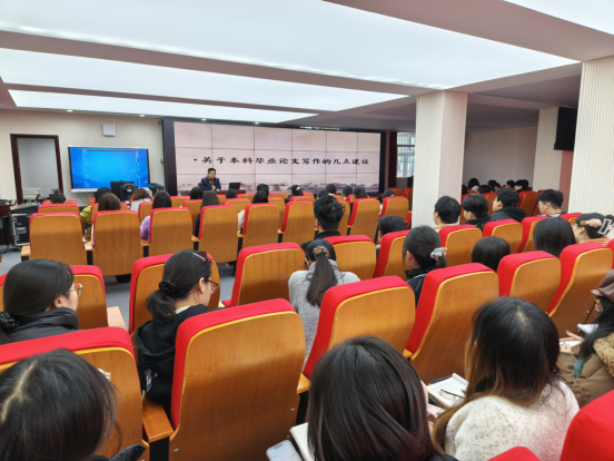 讲座正式开始前,赵婉华副院长围绕思想政治教育专业毕业论文的特殊性与重要性发表讲话。她着重强调,思政专业毕业论文不仅是检验学生四年专业学习成果的核心载体,更是培养学生运用马克思主义立场、观点、方法分析和解决现实问题能力的关键环节。赵婉华副院长提出,论文写作需紧扣“立德树人”根本任务,充分体现思政学科的思想性、理论性与实践性,要求全体师生以严谨、认真的态度,高质量落实论文写作与指导各项工作,为后续论文工作开展定下严谨务实的基调。